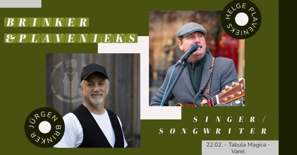 Am Donnerstag, den 22. Februar, lädt das Kulturzentrum Tabula Magica in Varel zu einem besonderen musikalischen Abend ein. Auf der Bühne stehen zwei Singer/Songwriter, die in der Szene längst keine Unbekannten mehr sind: Jürgen Brinker und Helge Plavenieks.