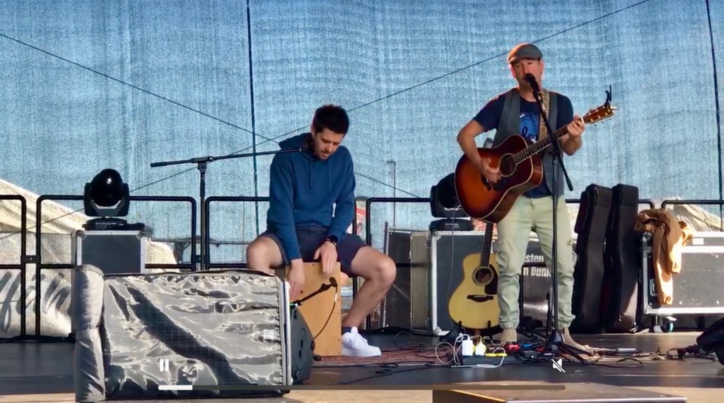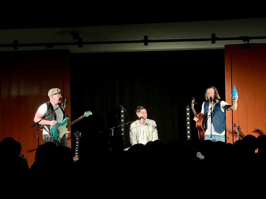 Chris glänzte auf seiner türkisfarbenen Fender Stratocaster und seiner Gibson Les Paul mit gefühlvollen Soli. Marcus Meyenburg lieferte an der Cajon und mit Beatbox starke Rhythmen. Und Helge führte mit Akustikgitarre, Blues Harp und seiner leicht nasalen Stimme, die einen hohen Wiedererkennungswert hat, charmant durch den Abend.