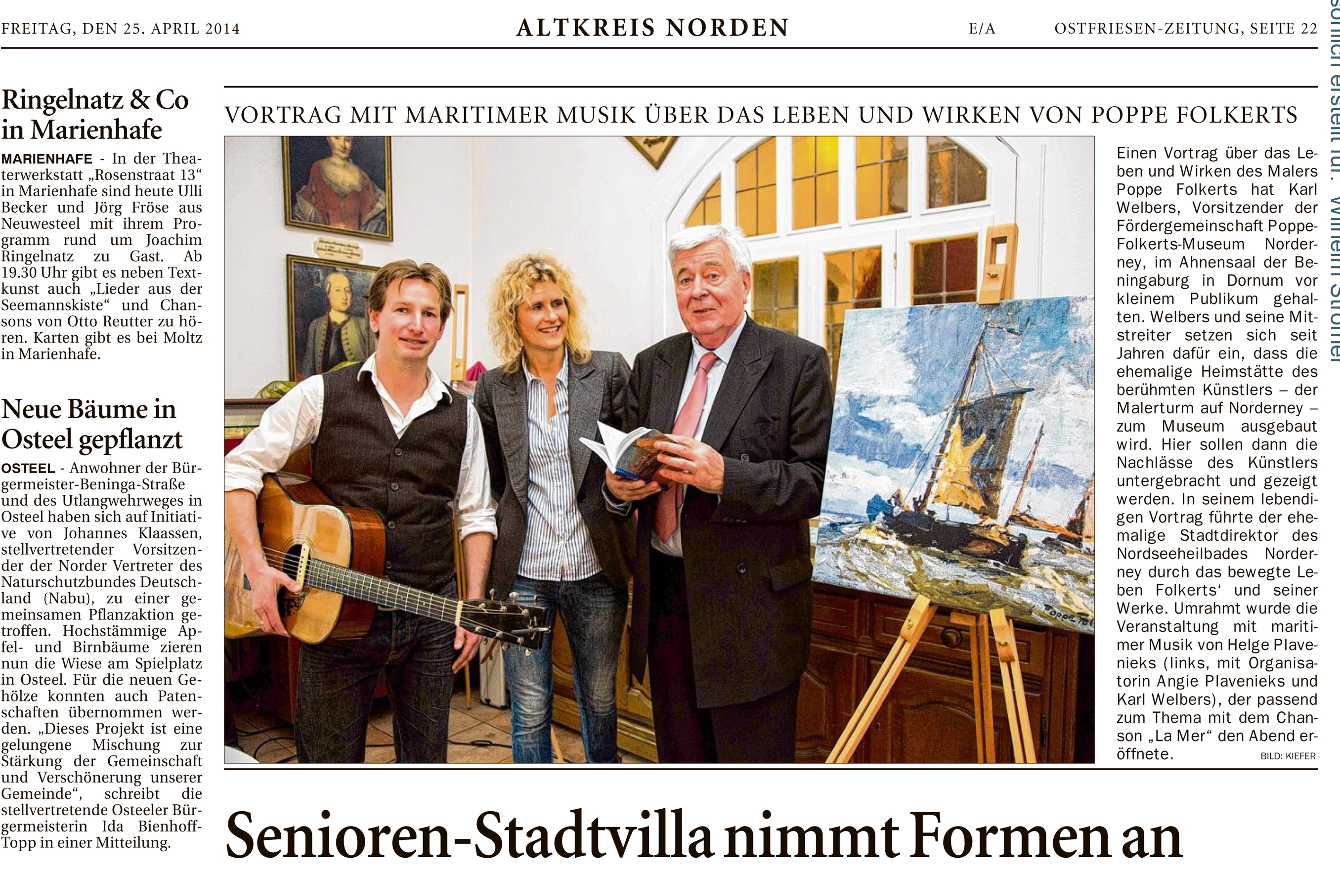 Zur Zeit begleite ich Karl Welbers den ehemaligen Stadtdirektor von Norderney bei seinem Vortrag über das Leben und Wirken des See- und Landschaftsmalers Poppe Folkerts.